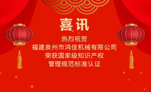 喜訊|熱烈祝賀福建泉州市鴻佳機械有限公司榮獲國家級知識產權管理規范標準認證